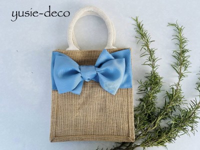 リボンの種類も豊富です、お好みのカラーでお作りください。バッグはトートバックやカゴバッグ。ジュート素材のバッグに付ければ雰囲気も変わります。