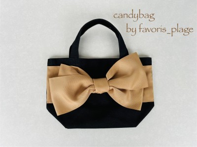 大きなリボンが目を引くキャンディーバッグ、針と糸は使わずに1レッスンで1作品ができあがります。