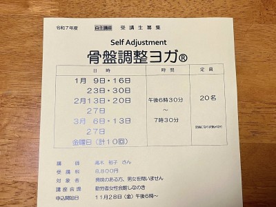【募集中】1月~3月:しなのき(骨盤調整ヨガ)